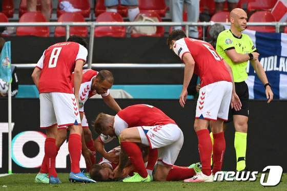 / 에릭센 기절 : ìë¦ì¼ 기ì í Cpr ì ë§ì ì¸ì¸ êµ¬ì¥ ëª¨ìµ í´ë¦¬ì / 덴마크 선수들은 관중들이 보지 못하도록 에릭센 주변을 둘러쌌다.